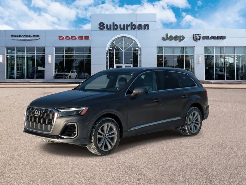 se habla Espanol! Our 2025 Audi Q7 55 Premium Plus quattro in Samurai Gray Metallic meets all your expectations. Powered by a TurboCharged 3.0 Liter V6 providing 335hp controlled by an 8 Speed Automatic transmission to send you to 60mph in just 5.7 seconds. Taking on your day is a pleasure within this All Wheel Drive SUV thanks to its ability to score up to 24mpg on the highway, smooth ride, and responsive handling. Youll also love how our Audi attracts attention with its aerodynamic bodywork accented with a panoramic sunroof, adaptive matrix-LED headlamps, and distinctive alloy wheels.